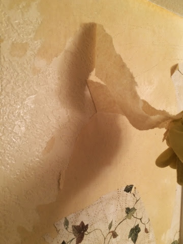 So, the forth step is to grab a putty knife or an abrasive sponge that won't damage the walls (if you want to save your nails) and start scraping and peeling!! Brad helped me with this step:)